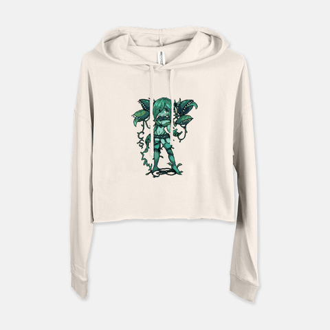 This cropped sweatshirt puts a fun twist on a classic style. Cropped at the waist, flat drawcord, sewn eyelets, and ribbing at the cuffs. We sell three-color variants, black, LightPink and, ivory. Choose from sizes small, medium, large, x-large. Made from a cotton/polyester blend fleece, only wash using cold water to preserve design and quality.